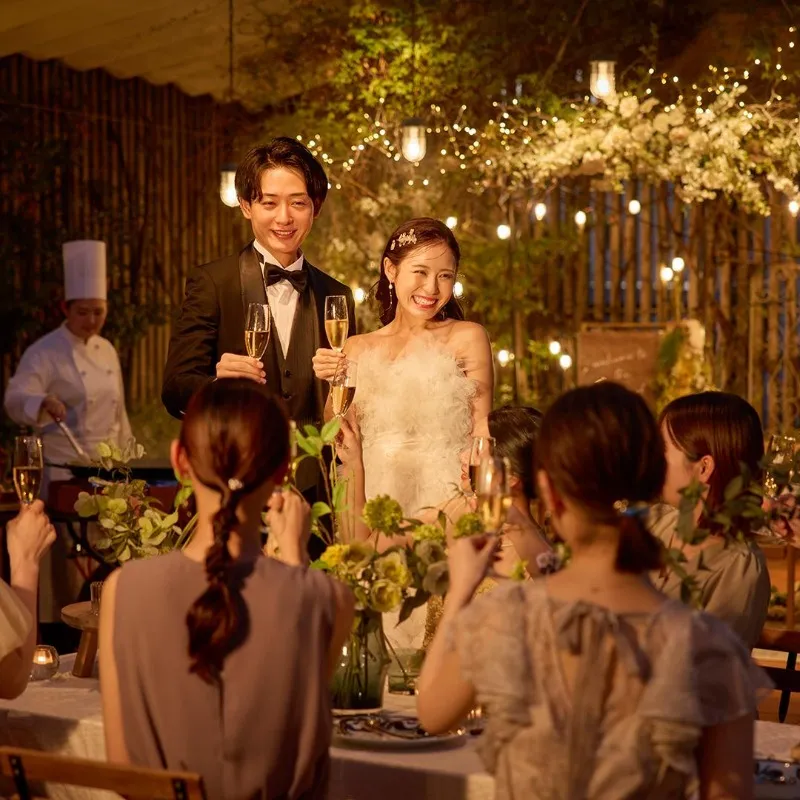 〈 卒花やゲストからの満足度◎自慢のコース試食つき 〉イルミネーションが輝くガーデンの雰囲気を楽しめるナイトフェア。自由な装飾と演出で、おふたりらしさが溢れるパーティーをご提案します。